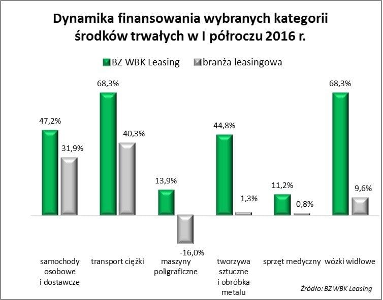 BZ WBK Leasing od wielu lat jest liderem rynku w zakresie finansowania maszyn i urządzeń. W I półroczu 2016 r. sfinansował maszyny i urządzenia o łącznej wartości blisko 820 mln zł, a na osiągnięty wynik istotny wpływ miało także finansowanie segmentu rolnego, który osiągnął poziom niemal 287 mln zł. Wyłączając sektor agro, który czeka na dotacje unijne, firma zwiększyła swój udział w rynku o blisko 1%.