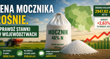Cena mocznika kwiecień 2026 pokazuje wyraźny wzrost stawek w całym kraju. Średnia cena netto przekroczyła 2947 zł/t, a różnice między regionami sięgają ponad 700 zł. Rolnicy analizują, czy to dobry moment na zakup nawozu azotowego przed kolejnymi zabiegami. Sprawdzamy najnowsze dane z rynku, opinie farmerów oraz realną opłacalność zakupu.