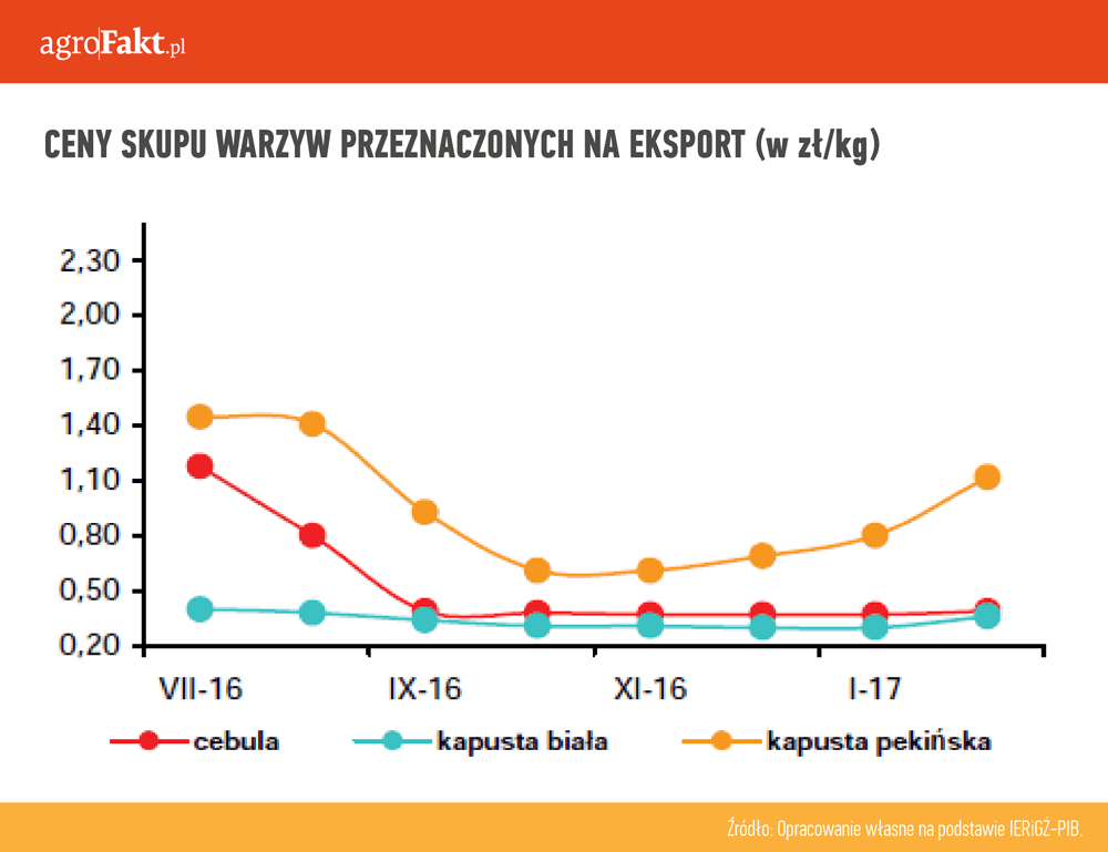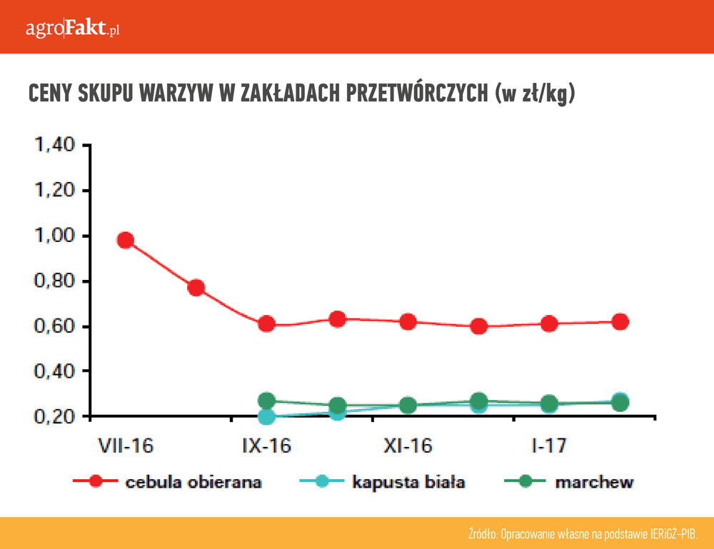 – W lutym 2017 r., w porównaniu ze styczniem br., w skupie na rynku produktów świeżych były wyższe skupowe ceny warzyw takich jak: cebula biała o 8%, marchew o 15%, kapusta biała o 23% i burak ćwikłowy o 2%. Jedynie pieczarki staniały o 5%. W zakładach przetwórczych wzrosły ceny skupu kapusty białej o 8% i cebuli obieranej o 2%, a stabilne były ceny skupu marchwi na kostkę i buraków – analizuje Smoleński z IERiGŻ.