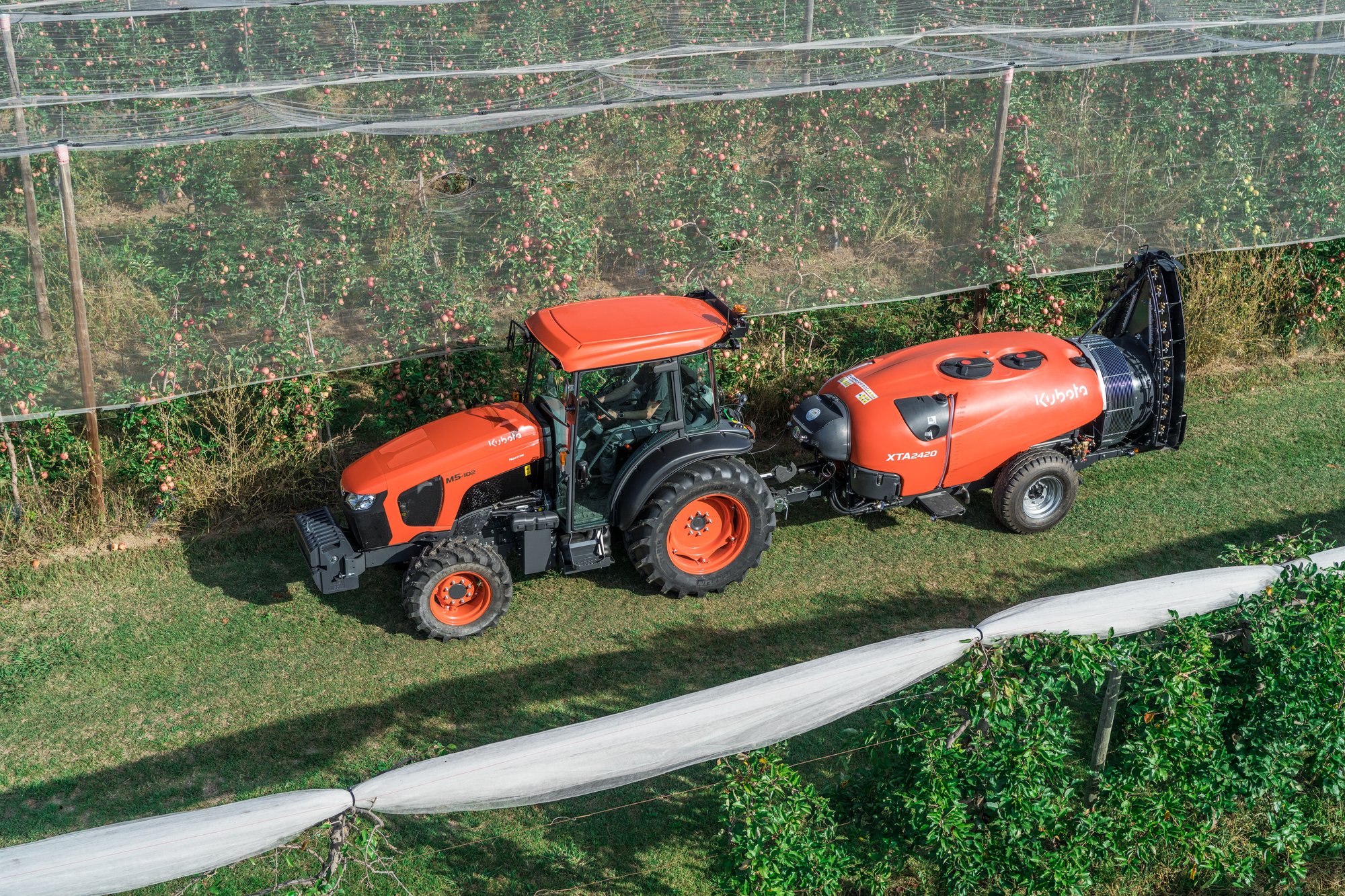 Ciągnik sadowniczy Kubota M5 świetnie współpracuje z opryskiwaczem XTA. To dwie maszyny idealnie dopasowane do siebie. Opryskiwacz Kubota XTA to aż 22 modele o pojemności od 1000 do 4000 litrów.