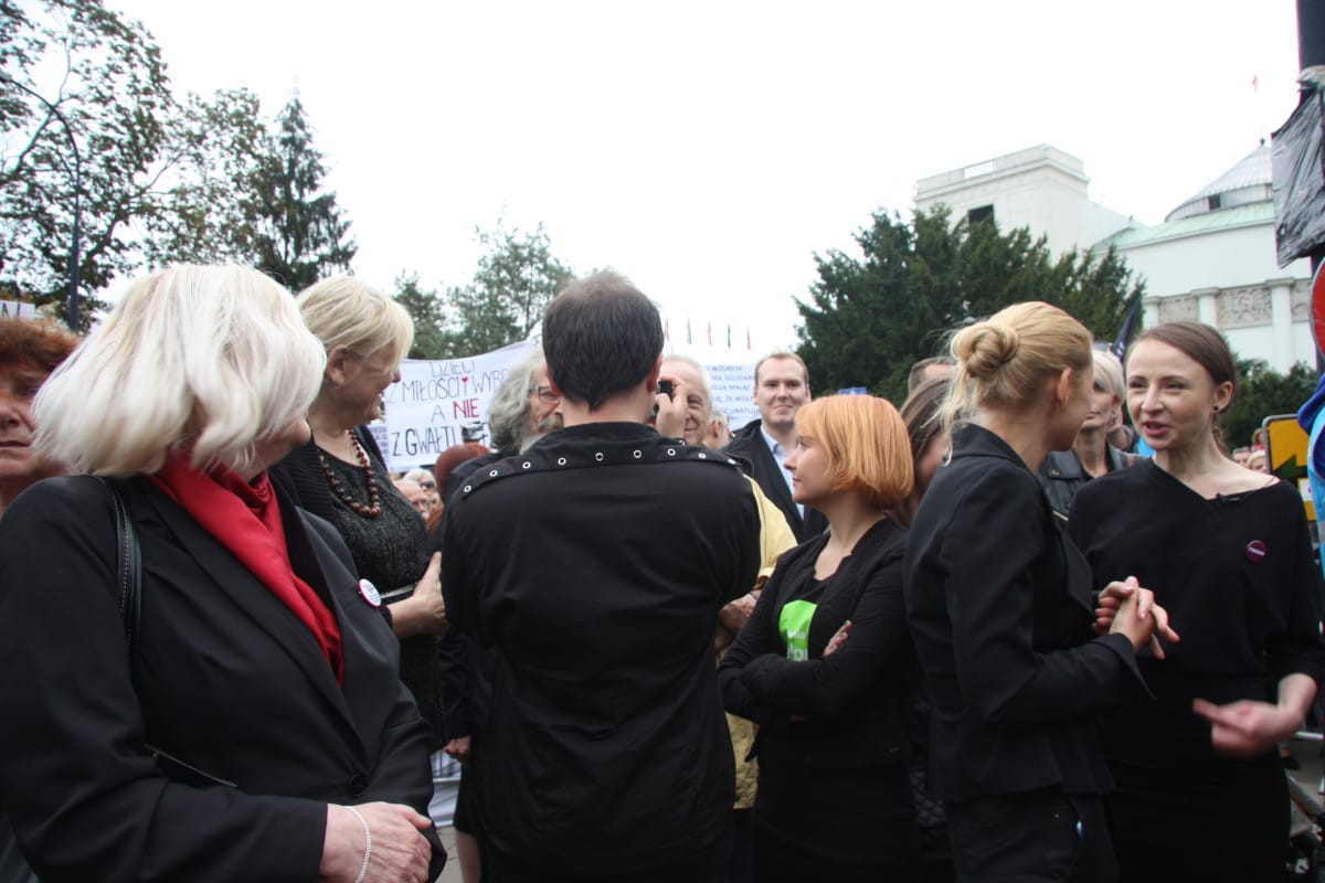 Przedstawicielki kilku partii politycznych, m.in. partii Razem i PO, a także organizacji pozarządowych i inicjatyw obywatelskich, kobiety głównie z dużych miast Polski m.in. z: Warszawy, Wrocławia, Torunia, Krakowa oraz mężczyźni i dzieci, protestowali przeciwko projektowi ustawy, która bezwzględnie zakazuje przerywania ciąży nawet jeśli pochodzi ona z gwałtu, zagraża zdrowiu kobiety lub płód jest uszkodzony.