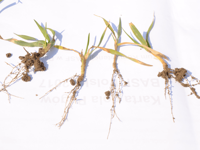 W tym przypadku również dobrą kondycję roślin po zimie należy zawdzięczać okrywie śnieżnej, choć na liściach wyraźnie widoczne są zbielałe końcówki, które wystawały ponad warstwą śniegu. System korzeniowy zbóż jest dobrze rozwinięty.