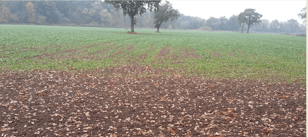Na zdjęciu plantacja w pierwszym roku po wycofaniu zapraw neonikotynoidowych. Wypady roślin rzepaku na skutek żerowania pchełki ziemnej i ślimaków.