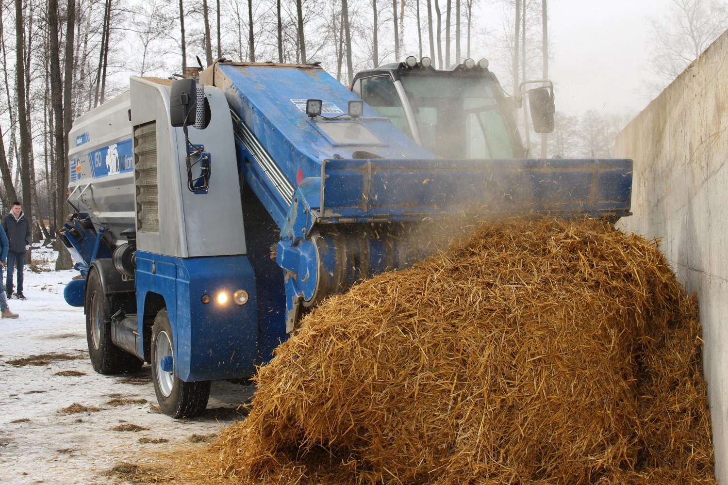 W pokazie wzięły udział poziome wozy paszowe: ciągany 4-ślimakowy Blattin King 17 NT i samojezdny z takim samym zestawem ślimaków oraz frezem załadunkowym: Blattin Lion 150.