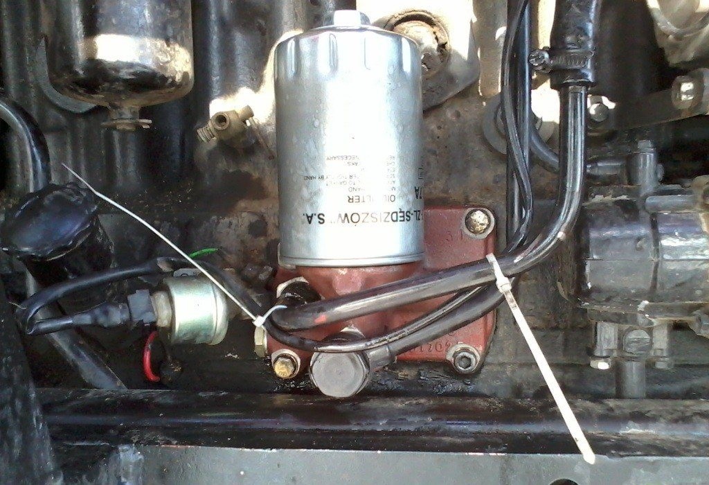 Rzecz analogiczna odnosi się do wymiany filtra oleju. W większości naszych starych ciągników jest już filtr wymienny, którego demontaż i montaż jest banalnie prosty. Pamiętamy oczywiście o przesmarowaniu uszczelki filtra czystym olejem przed dokręceniem do korpusu. Ja jeszcze zalewam filtr czystym olejem w celu pozbycia się powietrza.