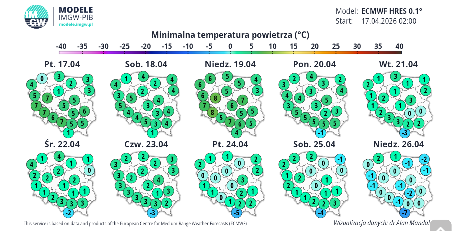 Właściwie jak podaje Instytut w 17. tygodniu bieżącego roku temperatura w całym kraju będzie poniżej normy wieloletniej. To oznacza, że okres zagrożenia może się wydłużyć.