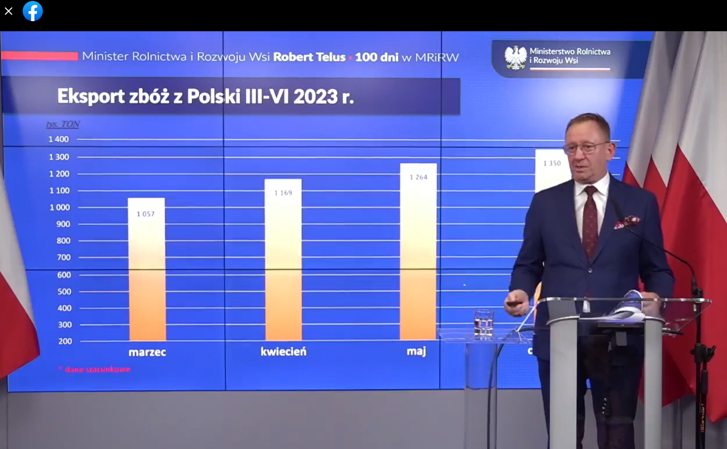 Chciałbym poinformować, że nie mamy już nadwyżek zboża! Przez ok. 4 miesiące 2023 r. udało się upłynnić ok. 4,5 mln ton zboża(…). Naszym celem było opróżnienie spichlerzy rolników przed żniwami. I ten cel został osiągnięty! — informuje Robert Telus.