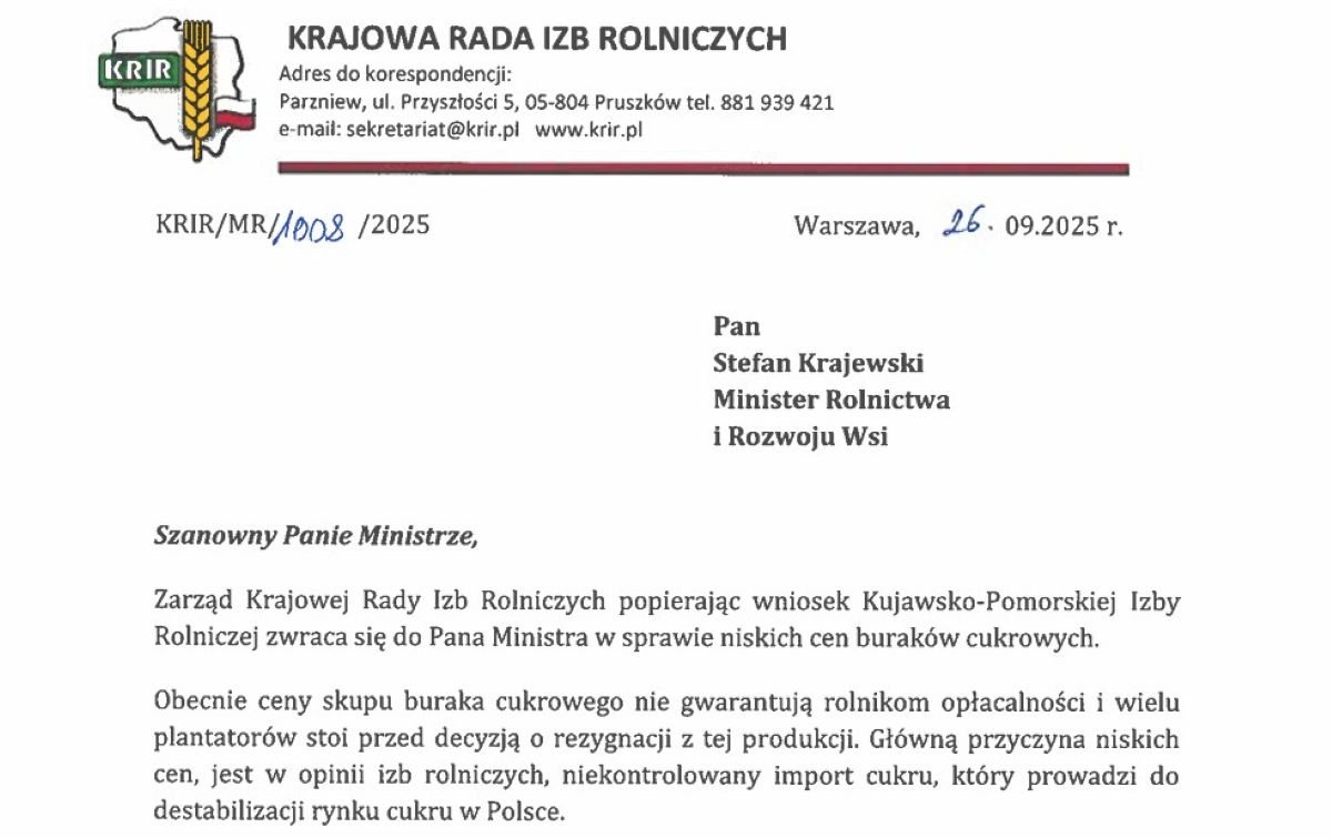Środowisko rolników związanych z produkcją buraków cukrowych zaapelowało o działania, które pozwolą na zachowanie krajowej produkcji tych roślin. Rolnicy wnioskują także o zapewnienie bezpieczeństwa sektora cukrowniczego w Polsce. W tym celu miałyby być wprowadzone mechanizmy kontroli, a także ograniczenia importu cukru oraz surowca do jego produkcji.