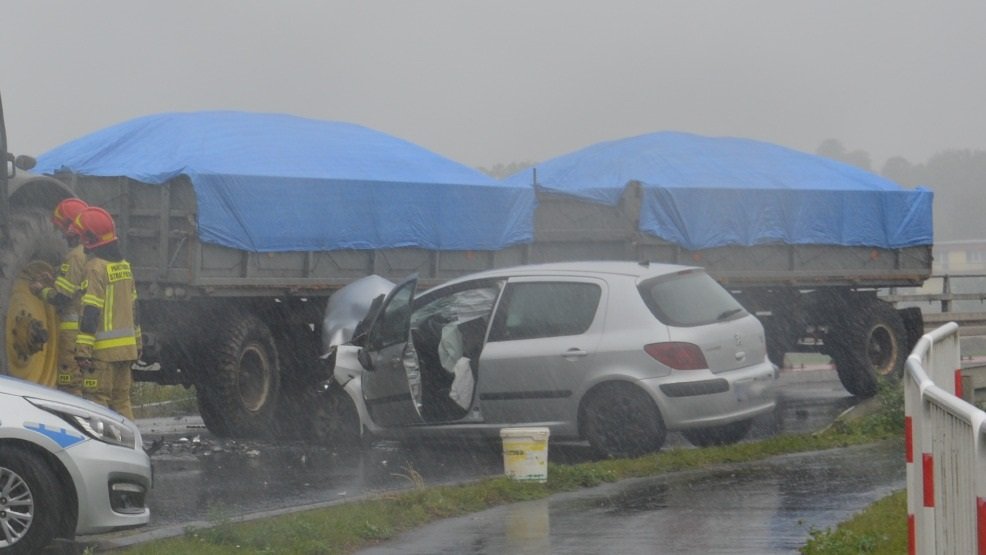Do pierwszego wypadku na drodze doszło w sobotę 18 września na trasie Gostyń-Grabonóg. 20-letni kierowca samochodu marki peugeot wbił się w przyczepę rolniczą, podczas wykonywania manewru wyprzedzania. Młody kierowca rozpoczął niebezpieczny manewr na zakręcie przed mostem. Samochód początkowo zderzył się z ciągnikiem jadącym naprzeciwko, a następnie wbił się pod jedną z przyczep rolniczych. W wyniku wypadku przewieziono kierowcę do szpitala.