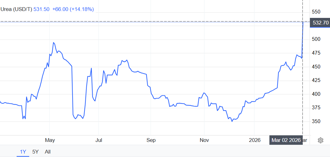Rynek nawozów w marcu reaguje na światowe ceny mocznika – Urea wzrasta do 531 USD/t (+14% w jeden dzień)