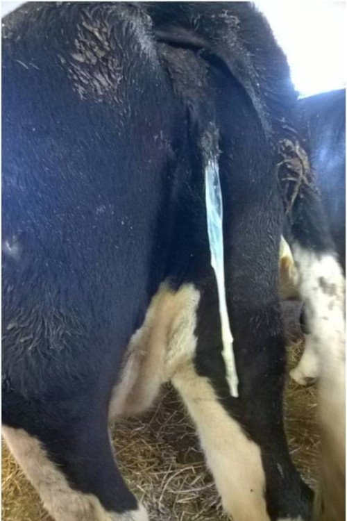 Kiedy inseminacja krów? Sygnałem jest charakterystyczny śluz. Na zdjęciu sopel śluzowy w trakcie rui