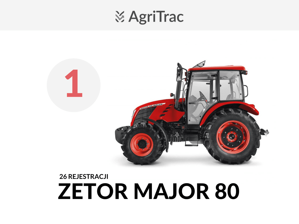 Najchętniej wybieranym ciągnikiem w czerwcu był czeski Major 80 od Zetora. Zarejestrowano 26 takich ciągników – o 18% więcej niż przed miesiącem. Drugim najpopularniejszym modelem był zaprezentowany w ubiegłym roku Deutz-Fahr Agrolux 410. W omawianym miesiącu zarejestrowano 21 ciągników o tym oznaczeniu. Trzecia pod względem popularności była kompaktowa Kubota L5040 – w czerwcu zarejestrowano 20 takich maszyn.
