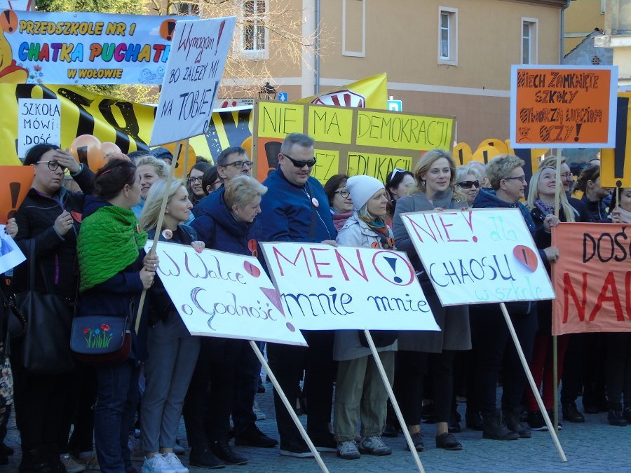 Trudno byłoby chyba znaleźć w kraju miasto, w którym nauczyciele powiedzieli „nie” strajkowi o lepszą szkołę dla dzieci, godność i godziwe życie dla nauczycieli. Na szczęście jest poparcie społeczne dla tej inicjatywy. – Młodzież odczuwa na własnej skórze efekty polityki MEN, chaos, beznadziejne podstawy programowe, brak pieniędzy na przyzwoite funkcjonowanie szkół etc. – mówi Urszula Opoń, nauczycielka, przewodnicząca ogniska ZNP przy CKZiU w Wołowie. – Bardzo wielu doświadczonych nauczycieli przystąpiło do strajku nie dla własnych korzyści. Spora część pedagogów jest, podobnie jak ja, w wieku przedemerytalnym. My walczymy o dobro dzieci, o szacunek dla zawodu, o nowoczesną a nie zaściankową szkołę. Walczymy o „normalną edukację”. Chcemy, aby dotarło do decydentów, że czasy Judymów i Siłaczek już się skończyły. Wciąż słyszymy banały, że mamy pracować dla idei, że mamy misję do spełnienia, że nam nie wypada strajkować. Tak, można pracować dla idei, ale nie za głodowe pensje, nie za bieganie ze szkoły do szkoły, aby uzbierać etat. To jest ostatnia chwila, skoro chcemy wywalczyć nowoczesną szkołę, odbudować szacunek dla zawodu i poprawić sytuację materialną nauczycieli. Jeśli nie zadbamy teraz o swoje prawa zostaniemy pariasami (razem z naszą młodzieżą) Europy.