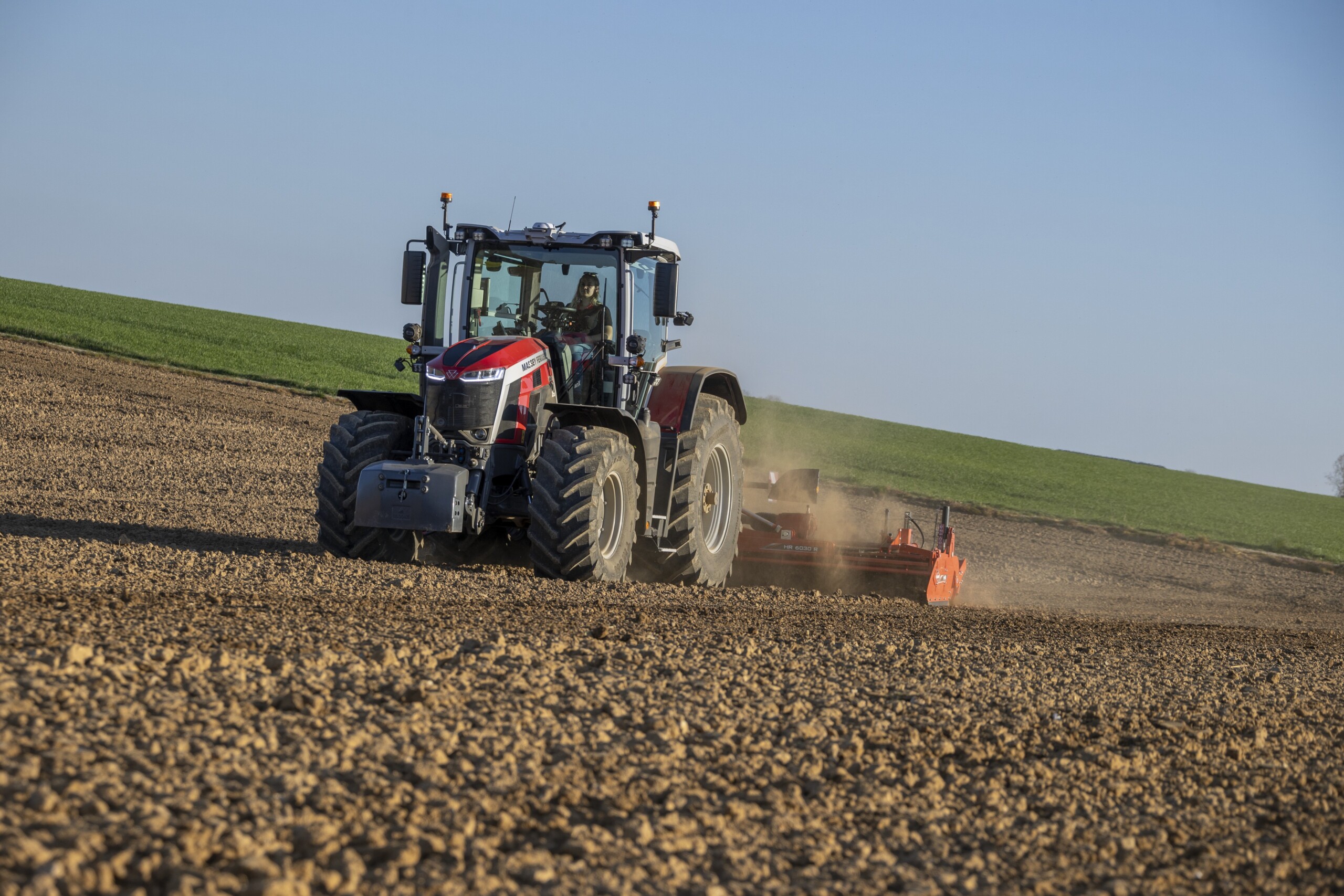 Wprowadzona na rynek w lipcu 2025 r. najnowsza seria MF 8S Xtra obejmuje sześć modeli o mocy od 205 do 305 KM i jest wyposażona w 6-cylindrowe silniki AGCO Power o pojemności 7,4 litra, zapewniające dużą moc, moment obrotowy i osiągi już przy niskich obrotach silnika – co pomaga obniżyć koszty eksploatacji. Szeroki wybór przekładni pozwala klientom dobrać układ napędowy najlepiej dopasowany do ich potrzeb. Unikalna konstrukcja Protect U firmy Massey Ferguson, charakteryzująca się 24-centymetrową szczeliną między zamkniętą obudową silnika a przednią szybą, ogranicza przenoszenie hałasu, ciepła i drgań do kabiny. Ponadto wprowadzono nowy system zarządzania wentylatorem, który optymalizuje jego pracę i zmniejsza ogólne zużycie energii, co wyraźnie widać w wynikach testów DLG. Przestronne stanowisko robocze z dużymi drzwiami i ogromną powierzchnią szyb wynoszącą 6,6 m² zapewnia niezrównaną widoczność 360 stopni z fotela, a szeroki wybór specyfikacji i opcji oznacza, że ciągniki te można dostosować do wszystkich typów i rozmiarów gospodarstw.