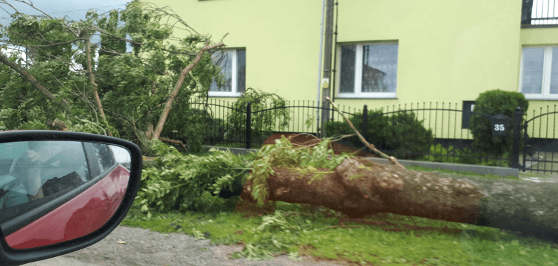 Drzewo powalone przez wiatr może spaść na człowieka bądź budynki. Umorzenie składek KRUS ulży w przypadku braku płynności finansowej będącej skutkiem powstania szkody.