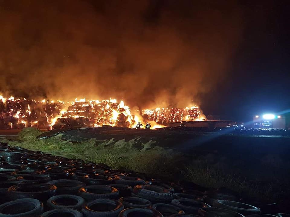 Tego samego dnia około 03:00 w Kucharach Borowych doszło do ogromnego pożaru stogu słomy. Pożar objął ponad 2 tysiące sztuk beli i lawetę z sianem. Na miejscu pojawiły się jednostki straży pożarnej OSP Grodziec, OSP Rychwał, OSP Grochowy, OST Dąbroszyn, OSP Kuchary Kościelne oraz PSP w Koninie. Strażacy zabezpieczyli teren, dzięki czemu ogień nie rozprzestrzenił się na pobliski wybieg dla zwierząt, w którym znajdowało się około 250 sztuk bydła.