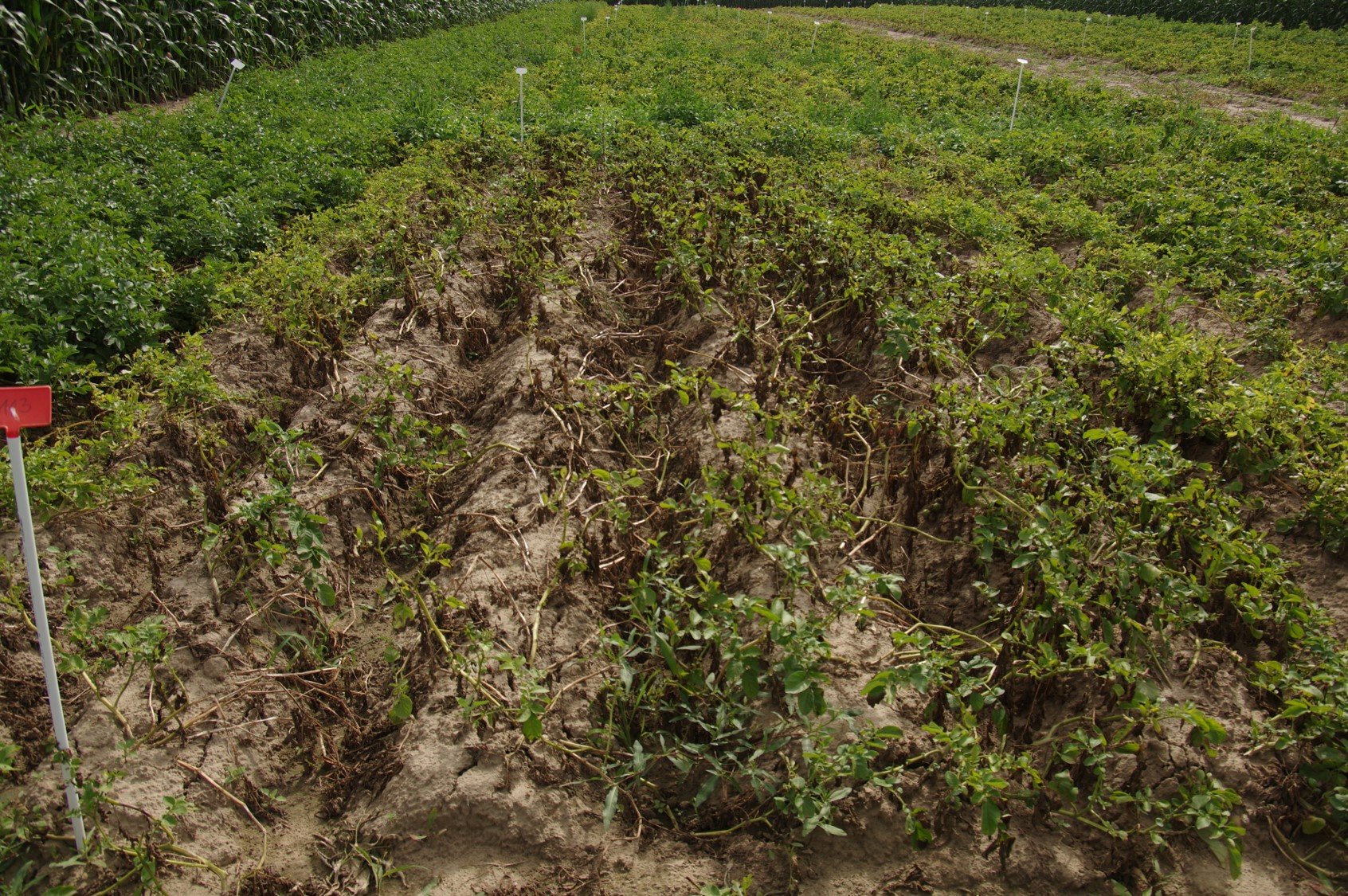 Plantację ziemniaka w warunkach zagrożenia infekcją przez sprawcę zarazy ziemniaka powinno się monitorować 2-3 razy w tygodniu, aby nie przegapić odpowiedniego momentu zabiegu