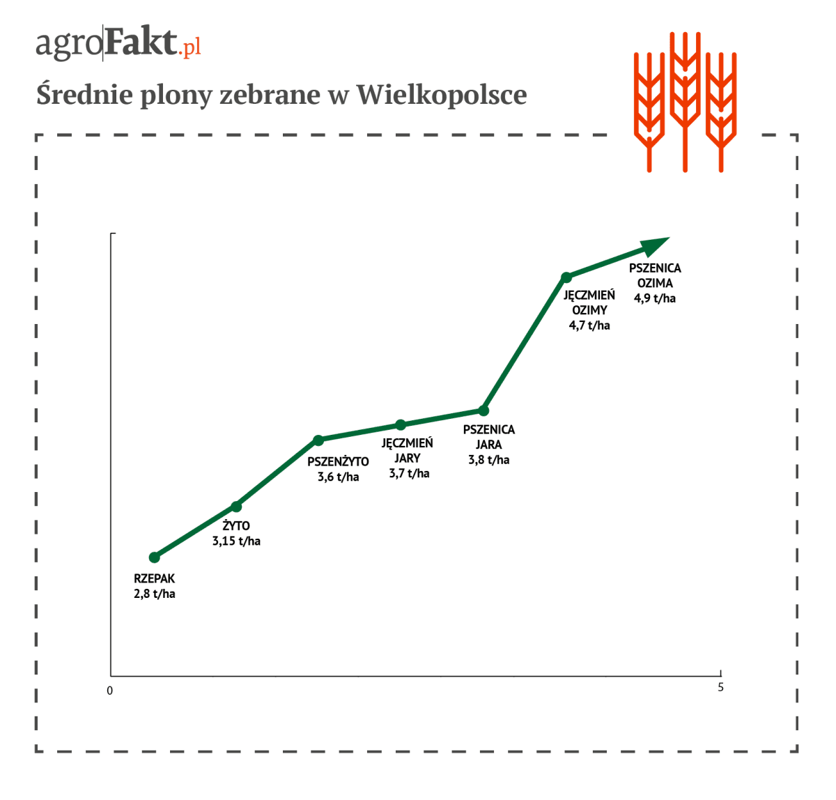 Plony nie cieszą ani rolników, ani ekspertów. Jednym z polskich spichlerzy jest Wielkopolska. Patrząc na średnie plony, widzimy, że nie jest dobrze.