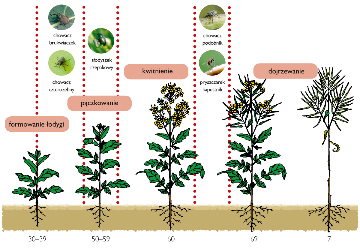Uważa się, że zwalczanie szkodników łodygowych w rzepaku ozimym należy rozpocząć przed złożeniem jaj przez chrząszcze – w fazie BBCH 30-50.